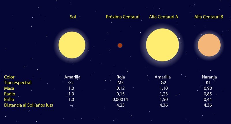 - Datos comparativos del Sol y sus vecinas de Alfa Centauri -